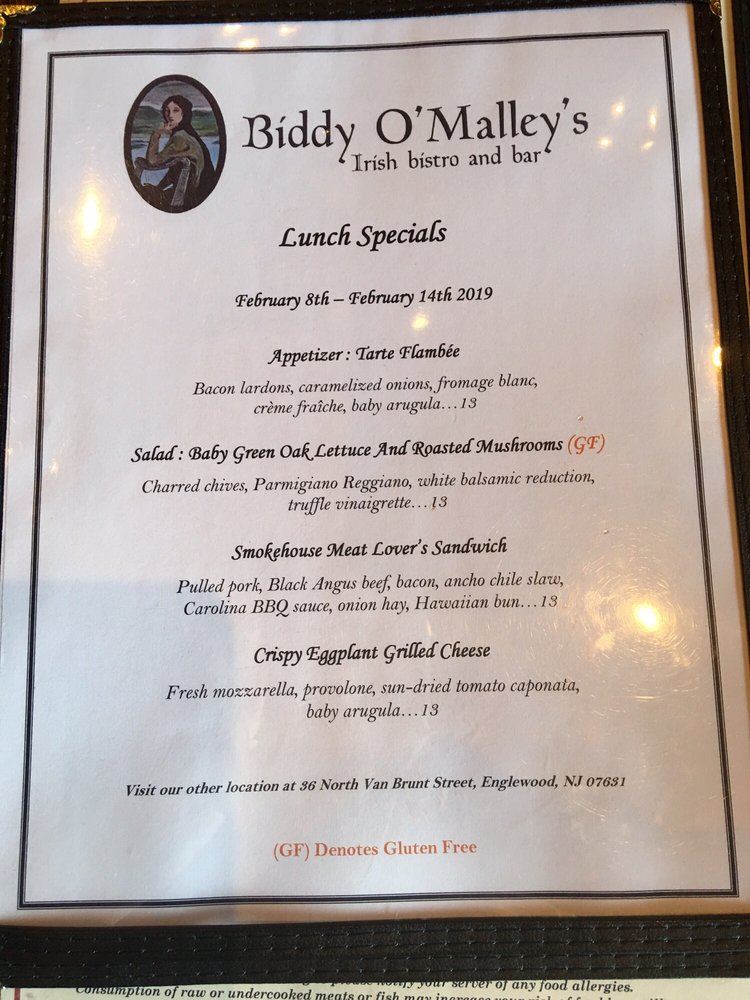 Biddy O'Malley's, an American restaurant located at 191 Paris Ave Northvale, NJ, offers a diverse menu with many vegetarian options. With amenities like delivery, takeout, reservations, and wheelchair accessibility, it caters to a wide range of customers. The cozy yet classy ambiance, full bar, outdoor seating, and attentive waitstaff make for a memorable dining experience. Customers rave about the delicious food, from French Onion soup to thick burgers, and the impeccable service. Biddy O'Malley's is a must-visit for those seeking great food, excellent service, and a warm atmosphere. Whether dining in, taking out, or simply enjoying a drink at the bar, this restaurant promises a consistently exceptional experience.